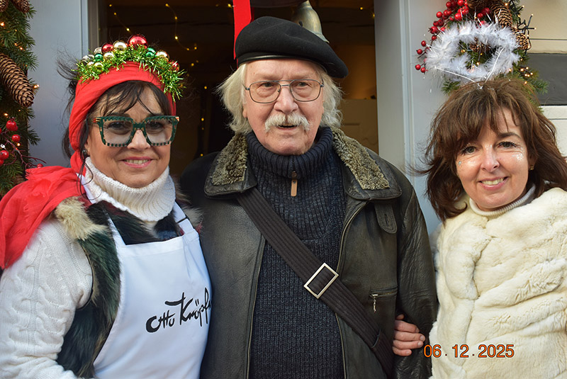 Kunst und Genuss waren zu erleben: Carola Busse, Druckkünstler Ernst August Zimmerman und Weihnachtsengel Franziska Rosenbaum (v.l.n.r.)
