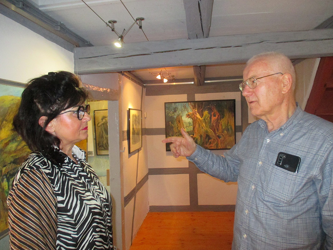 Mit einer gut besuchten Finissage der Rolf-Huber-Ausstellung schloss im Knöpfer-Haus die Saison 2022. Auch am letzten Öffnungstag konnten nochmals zahlreiche Gäste aus Arnstadt, Gotha, Erfurt und der Wachsenburg-Region begrüßt werden. Einer von ihnen war der Kunstwissenschaftler Prof. Peter Arlt (Gotha), der angesichts des Trubels im kleinen Knöpfer-Museum ins Gästebuch schrieb:“ Das könnte als Sinnbild verstanden werden für den Aufbruch im Freundeskreis Otto Knöpfer, der vieles wiederbelebt hat und einiges ins Leben ruft.“ Mit 650 Besuchern der beiden diesjährigen Expositionen von Matthias Sehrt und Rolf Huber erreichte das Knöpfer-Haus eines der bisher besten Saisonergebnisse. Jetzt sind die Mitglieder des Freundeskreises in ehrenamtlicher Arbeit engagiert dabei, den Burgadvent auf der Wachsenburg vom 9. bis 11.12. vorzubereiten.