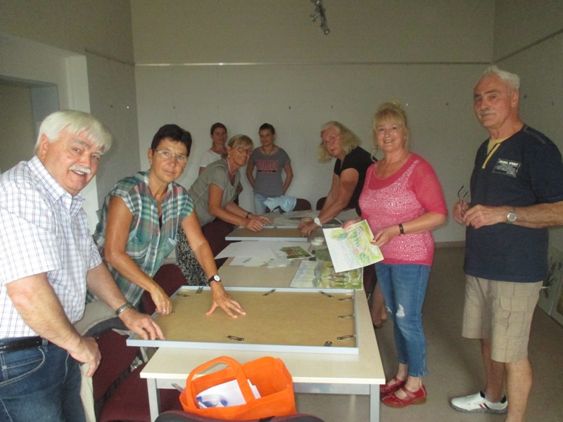 Auf Hochtouren liefen am Donnerstag (21.07.2016) die Vorbereitungen des Arnstädter Malzirkels für seine Ausstellung am kommenden Sonntag (24.07.2016). Mitglieder der Gruppe rahmten die geschaffenen Werke und hängten sie im Knöpfer-Haus. 26 Frauen und Männer haben beim Offenen Malen sehenswerte Bilder gestaltet. Sie zeigen Blumen, Landschaftsmotive und Ortsansichten von Holzhausen. Einige Bilder werden auch zum Kauf angeboten.