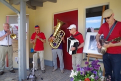 Der Ausstellungsauftakt - in Anwesenheit von Bürgermeister Uwe Möller sowie der Ortsteilbürgermeister Mario Drehkopf (Holzhausen) und Hans Ullrich (Haarhausen) wurde von einem kleinen Hoffest begleitet. Die Stadtmusikanten aus Arnstadt und ein Leierkastenmann sorgten für stimmungsvolle Musik. Die Holzhäuser Landfrauen boten Kaffee und leckeren Kuchen an, Bratwurst konnte man auch probieren. Jochen Thiele